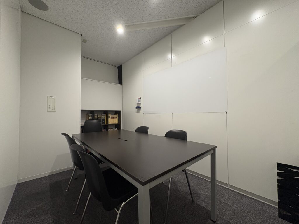 12月に新設した会議室です。打ち合わせや面接、Web会議、勉強会など様々な用途にご利用いただけます。予約状況によって、レイアウトが写真と異なる場合があります。